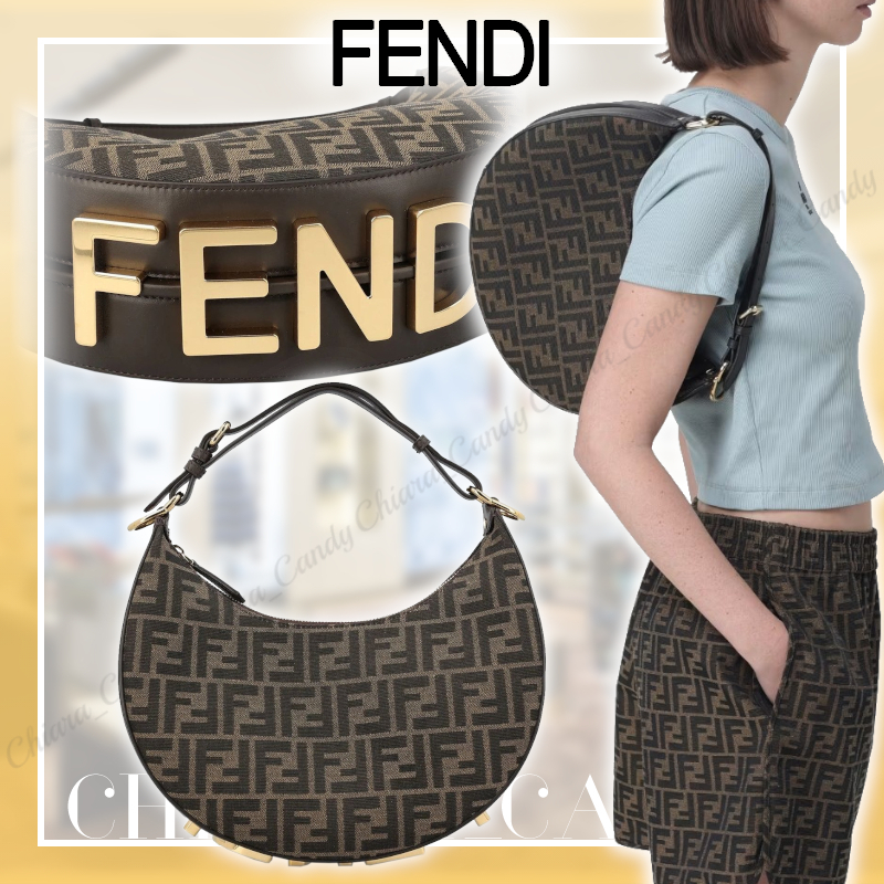 【24SS NEW】FENDI / FF ジャカード メタルロゴ ホーボーバッグ