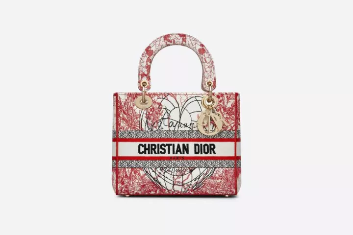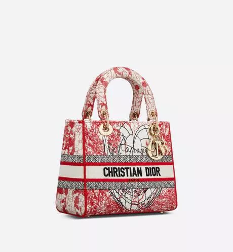 「Dioramour (ディオールアムール)」カプセルコレクションより、クラシックなエレガンスとディオールのモダニティを併せ持つ「Lady D-Lite(レディ D-ライト)」バッグ。アーティスト ピエトロ・ルッフォに着想を得た、レッドとホワイトの「D-Royaume d'Amour (D-ロワイヨム ダムール)」モチーフの刺繍を全面にあしらいました。フロントに“クリスチャン・ディオール”シグネチャーをあしらい、ボリューム感のあるペールゴールドトーン メタルの“D.I.O.R.”チャームが魅力的なシルエットを引き立てます。幅広でリバーシブルの刺繍入りショルダーストラップは取り外すことができ、手提げスタイルはもちろん、ショルダーバッグやクロスボディバッグとしてもお使いいただけます。「ディオールアムール」の他のアイテムと組み合わせてもお楽しみいただける、ミディアムサイズのモデルです。