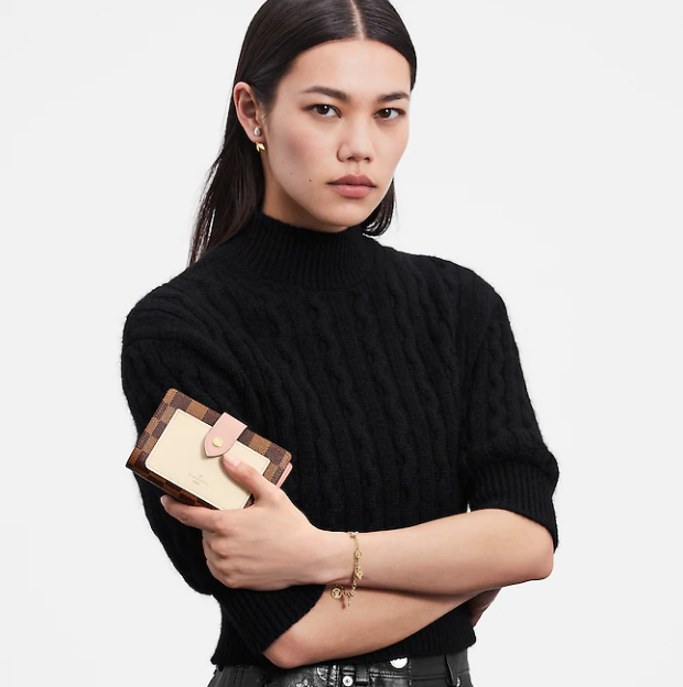 使いやすいミディアムサイズのデザインに、複数のカードスロット、紙幣用ポケット、ファスナー付きコイン用コンパートメントを備えた、機能性が魅力の「ポルトフォイユ・ジュリエット」。ダミエ・キャンバスで仕立て、2色のレザーでトリミングを施しました。レザー製のフロントポケットには、ゴールドカラーでエンボス加工したシグネチャーが個性を放ちます。
