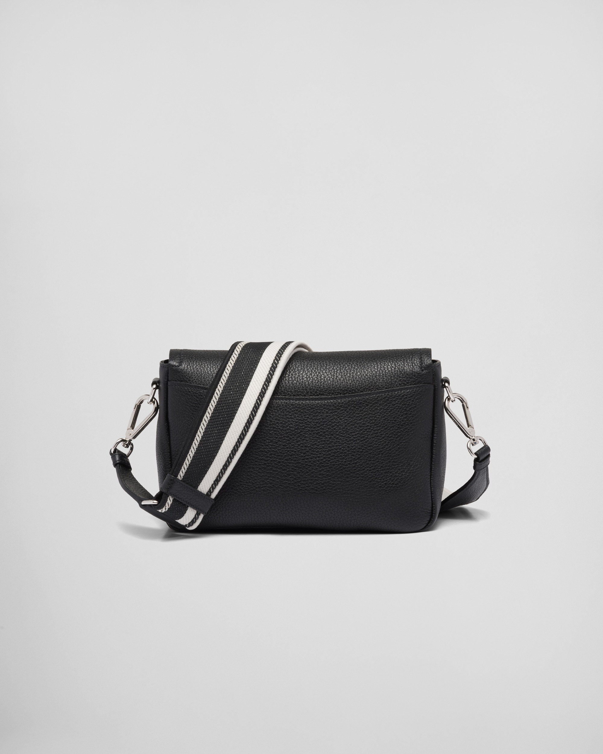 サイドにソフトなプリーツ入りのモダンなシルエット、フラップにゴールドのレタリングロゴをあしらった小ぶりなレザーバッグ。コントラストカラーのロゴ刺繍入り織テープの調節可能なショルダーストラップ付で、クロスボディバッグとしてもショルダーバッグとしても使用できる使い勝手に優れたバッグ。