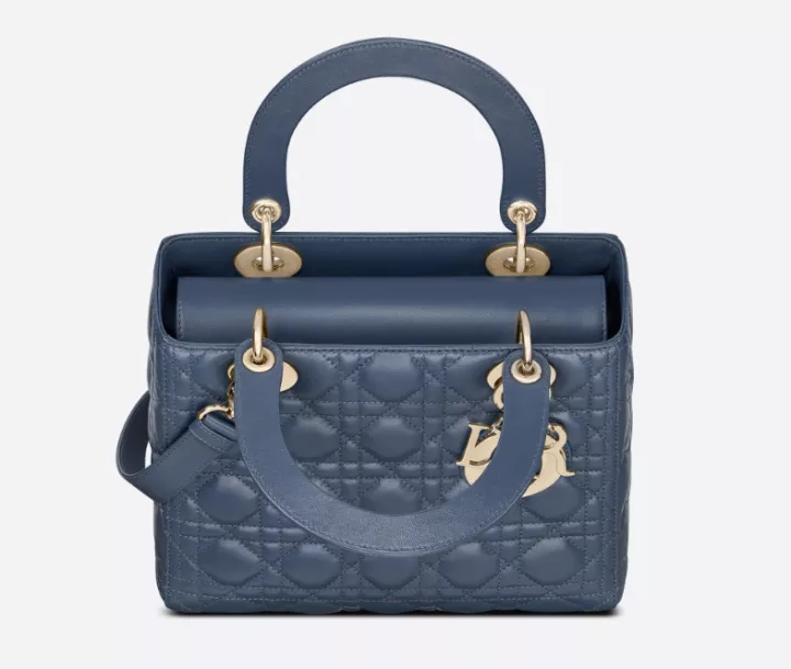 ディオールのビジョンであるエレガンスと美を体現する、“レディ ディオール”ハンドバッグ。女性らしさ溢れる、時代を超えたモダンなデザイン。ダークデニムカラーのラムスキンに、アイコニックな“カナージュ”ステッチを纏った至高のキルティングが、存在感を放ちます。ペールゴールドトーンのアイコニックな“D.I.O.R.”チャームが、バッグの魅力を一層引き立てています。ミディアムボディには、取り外し可能な細身のレザーショルダーストラップが付いています。