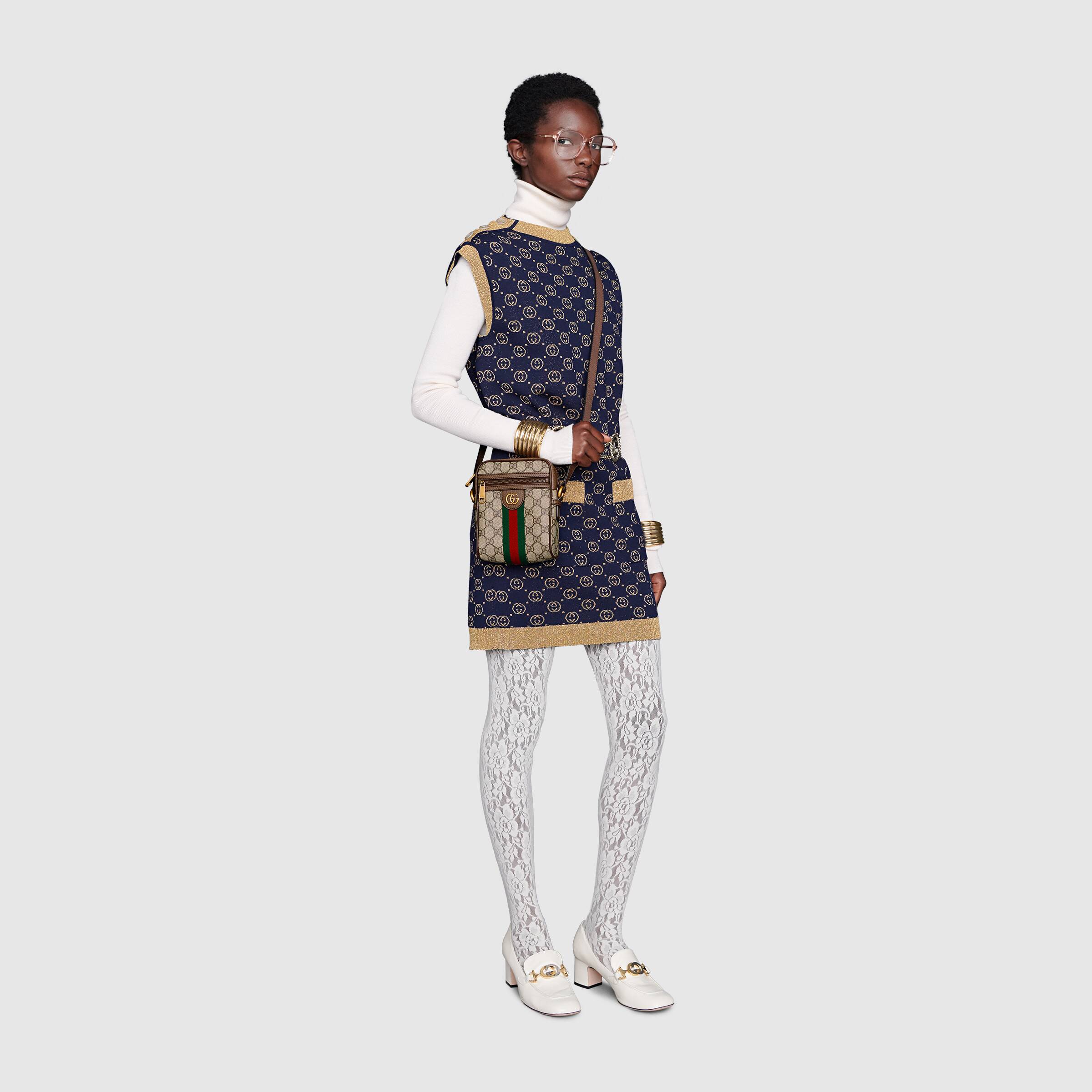 コンパクトなフォルムにジップ クロージャーとフロントポケットを付けたショルダーバッグ。グッチの代表的なモチーフ ダブルGとウェブ ストライプをクラシカルに組み合わせた〔オフィディア〕ラインには 新たなフォルムやシルエットを取り入れた新作が誕生しています。GGスプリーム キャンバスで仕立て ダブルGハードウェアをあしらいました。