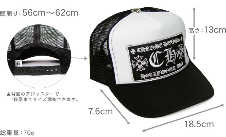 フロントからすでに、クロムハーツの風格を漂わせる トラッカーキャップ CH ブラック ホワイト。