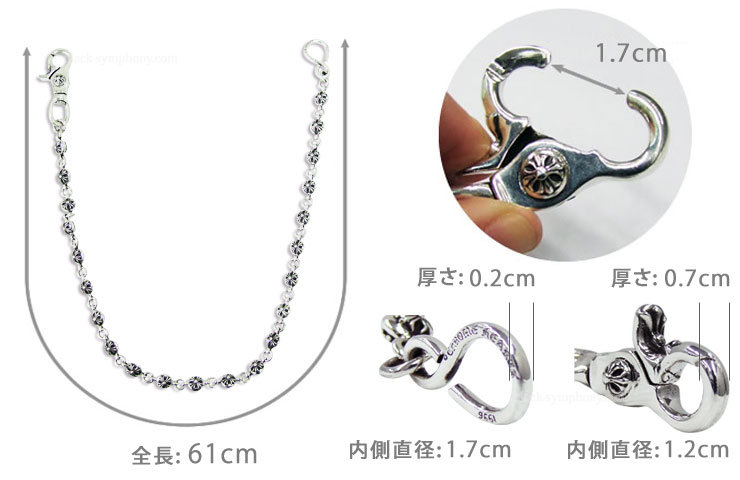 ウォレットチェーンはシルバーアクセの定番ですが、クロムハーツの象徴ともいえるCHプラスがデザインされた華奢な印象のクロスボールで、クロムハーツのウォレットチェーンの中でもスタイリッシュに決めることのできるアイテムです。