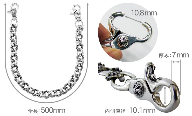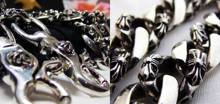 一見、ノーマルなチェーンに見えますが、クロムハーツの代表的なデザインであるクロスをモチーフとしたウォレットチェーンです。