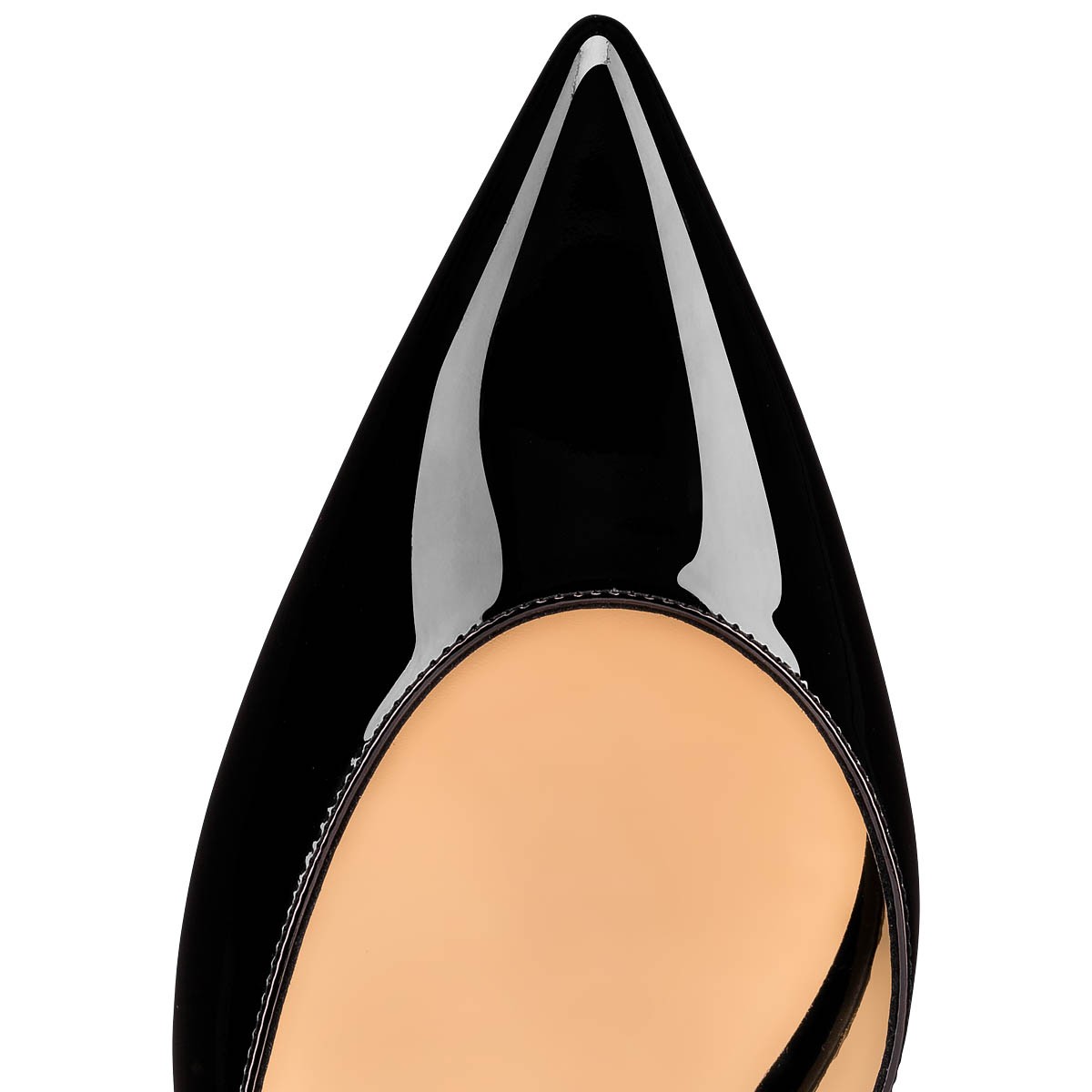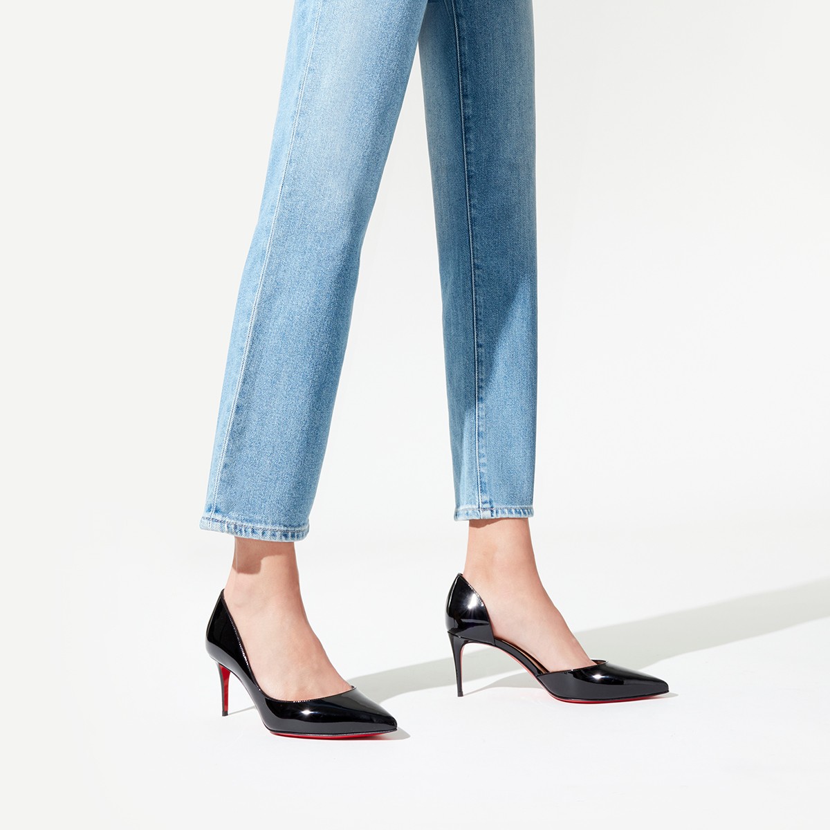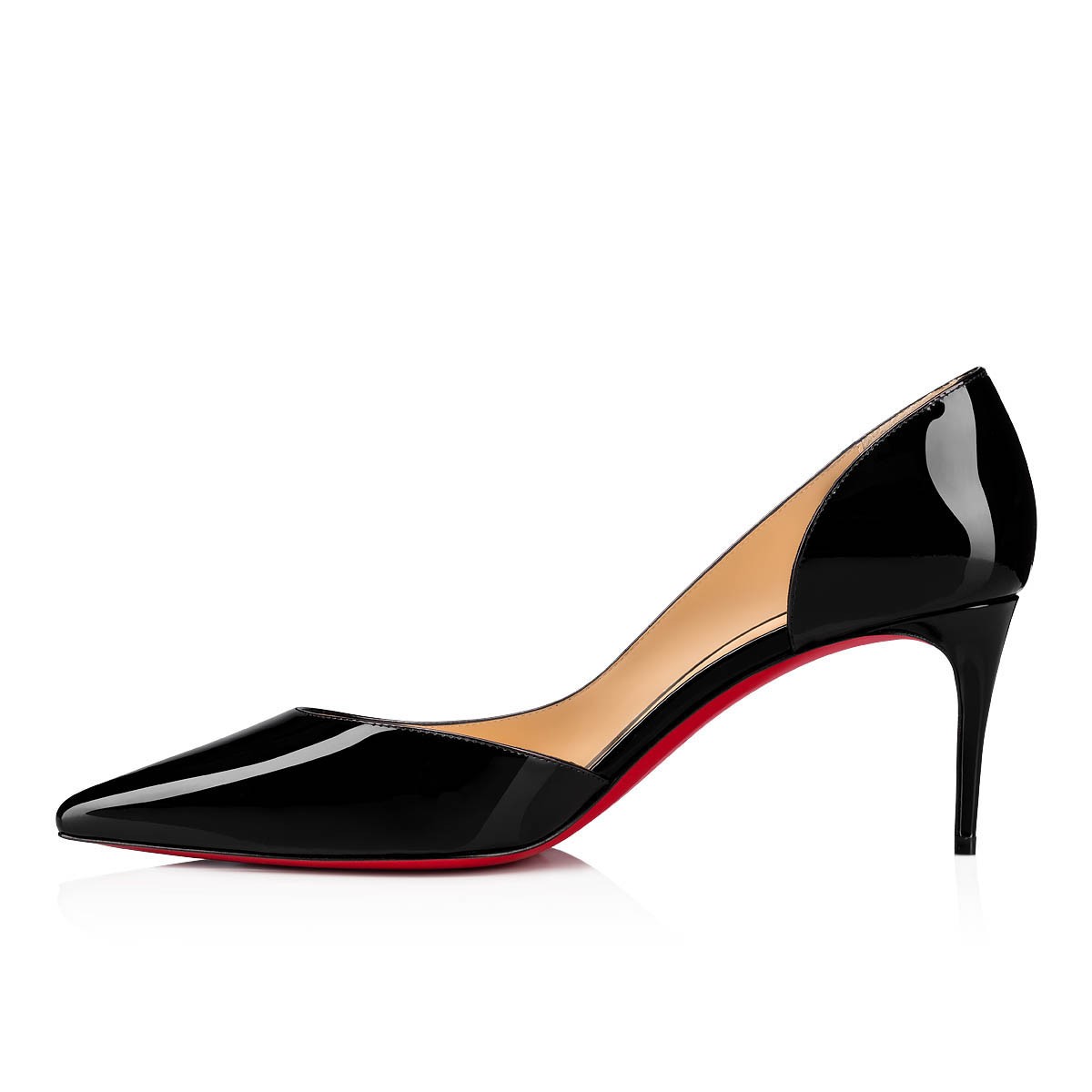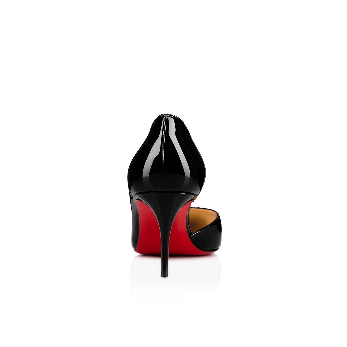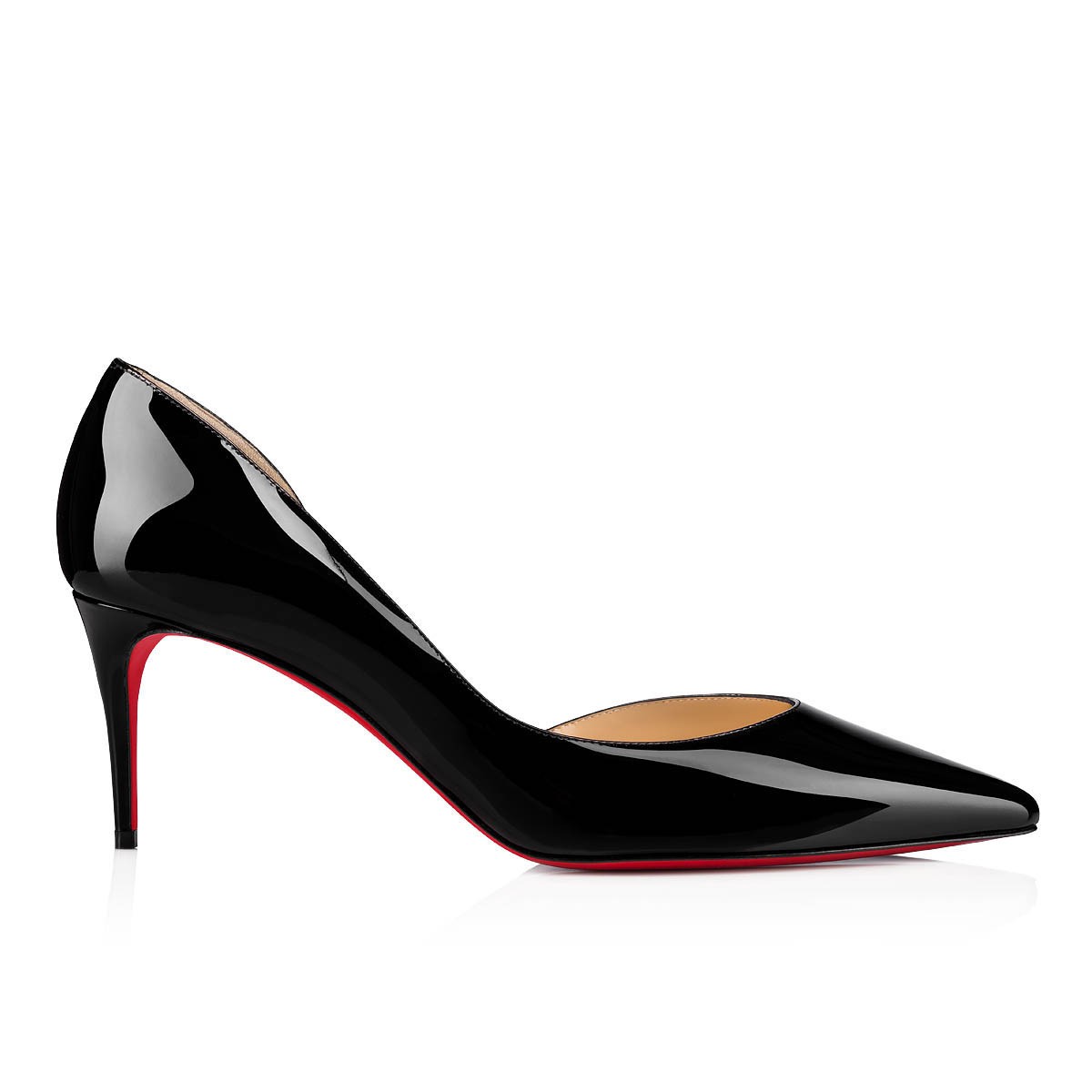 クリスチャン ルブタンならではのハーフドルセースタイルを、なめらかなブラックのパテントレザーでタイムレスに仕上げたIriza。