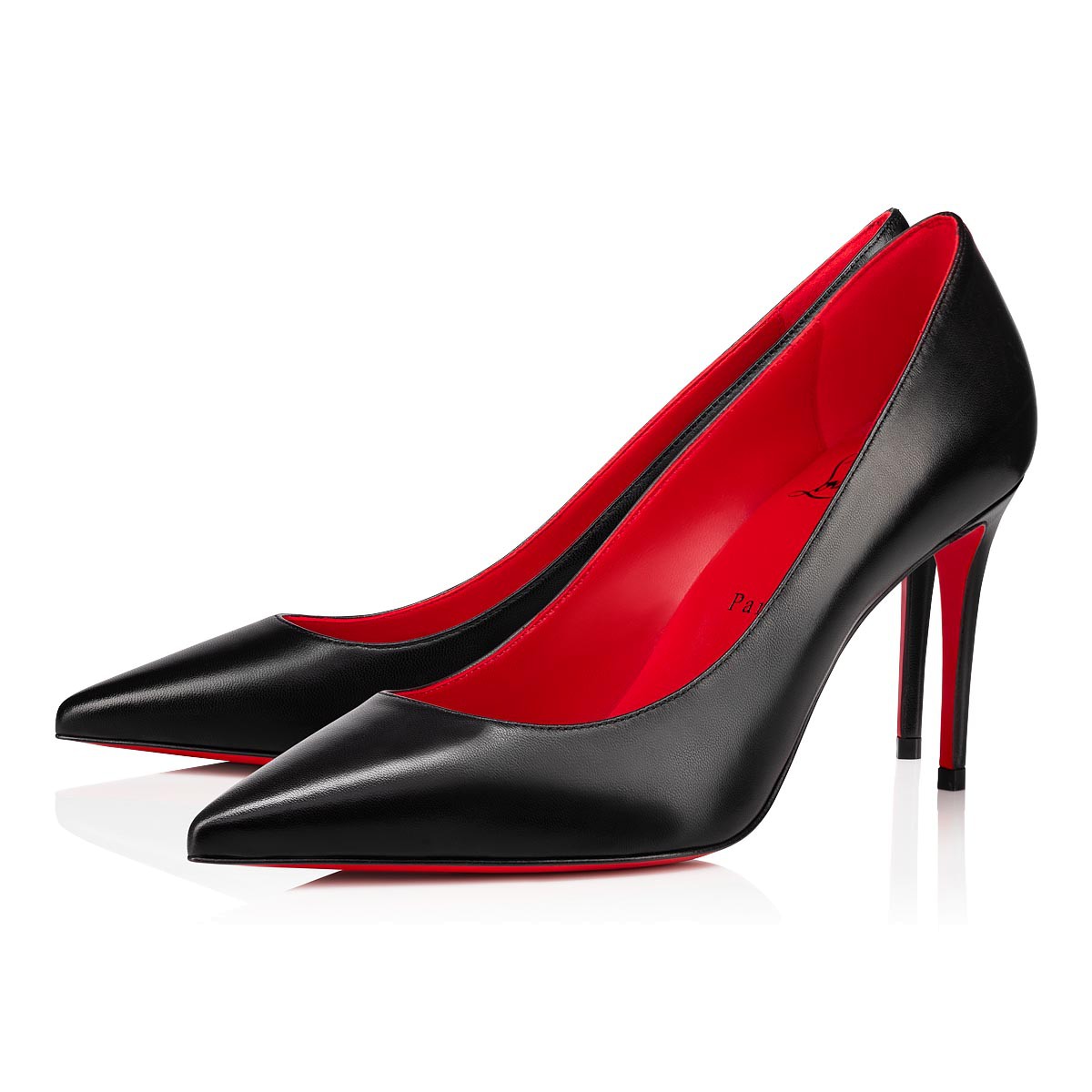 クリスチャン ルブタンのアイコニックな、Kate。洗練されたタイムレスなデザインを、大胆なアーチとモダンなポインテッドトウ、スレンダーなスティレットヒールで仕上げました。エレガントからコンテンポラリーなスタイルまで、あらゆる装いを美しく彩ります。最高に柔らかなブラックのキッドスキンレザーに、鮮やかなコントラストを描くシグネチャーのLoubiレッドのライニングを施した、85㎜のヒールです。