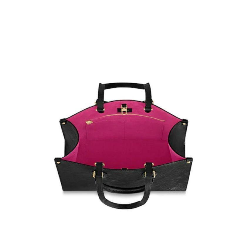 Onthegoのミディアムトートバッグは、エピグレインレザーで作られ、対照的なトーンで裏打ちされ、明るいLVアクセサリーで飾られています。長さの異なる2つのハンドルを装備し、ハンドバッグを肩にかけることができます。広々としたインテリアは、ラップトップなどの作業ツールを簡単に収容できます。普段使いの万能ハンドバッグです。