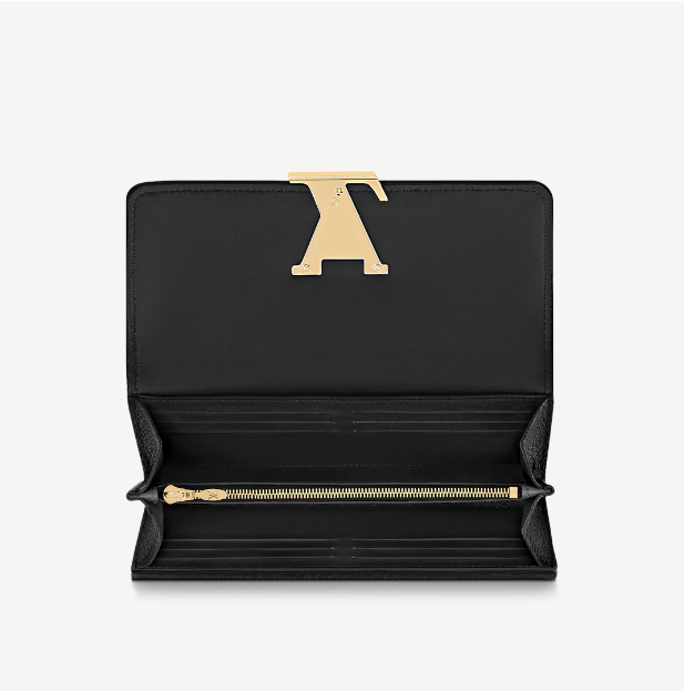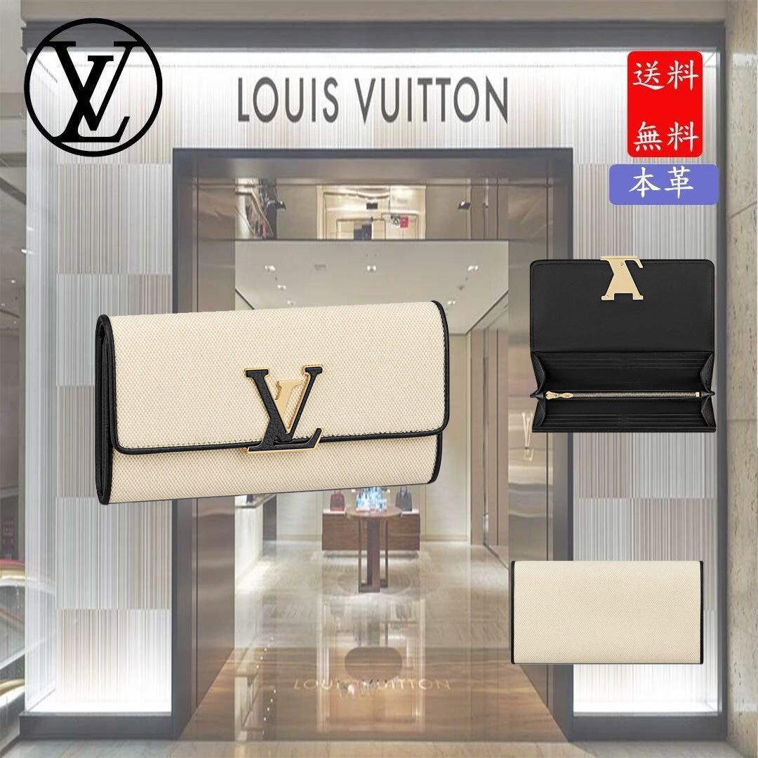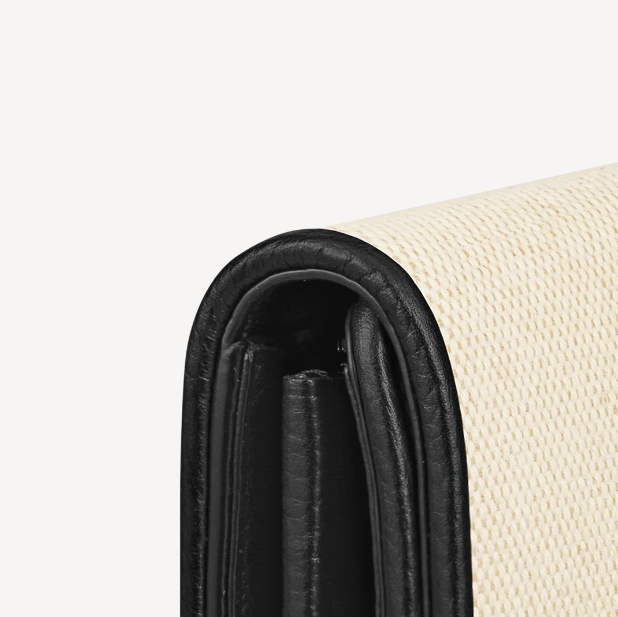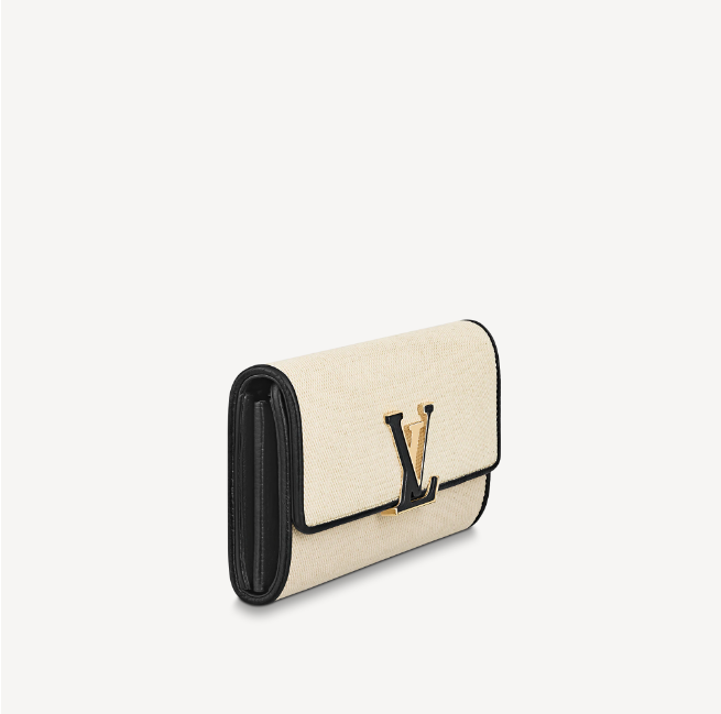 ナチュラルカラーのキャンバスとブラックレザーのトリミングを組み合わせて、洗練された雰囲気に再解釈した「ポルトフォイユ・カプシーヌ」。レザーでカバーした「カプシーヌ」を象徴するLV イニシャルの留め具が魅力です。クラシカルなフラップ付きの財布には、豊富なポケットやコンパートメント、カードスロットが備わっています。