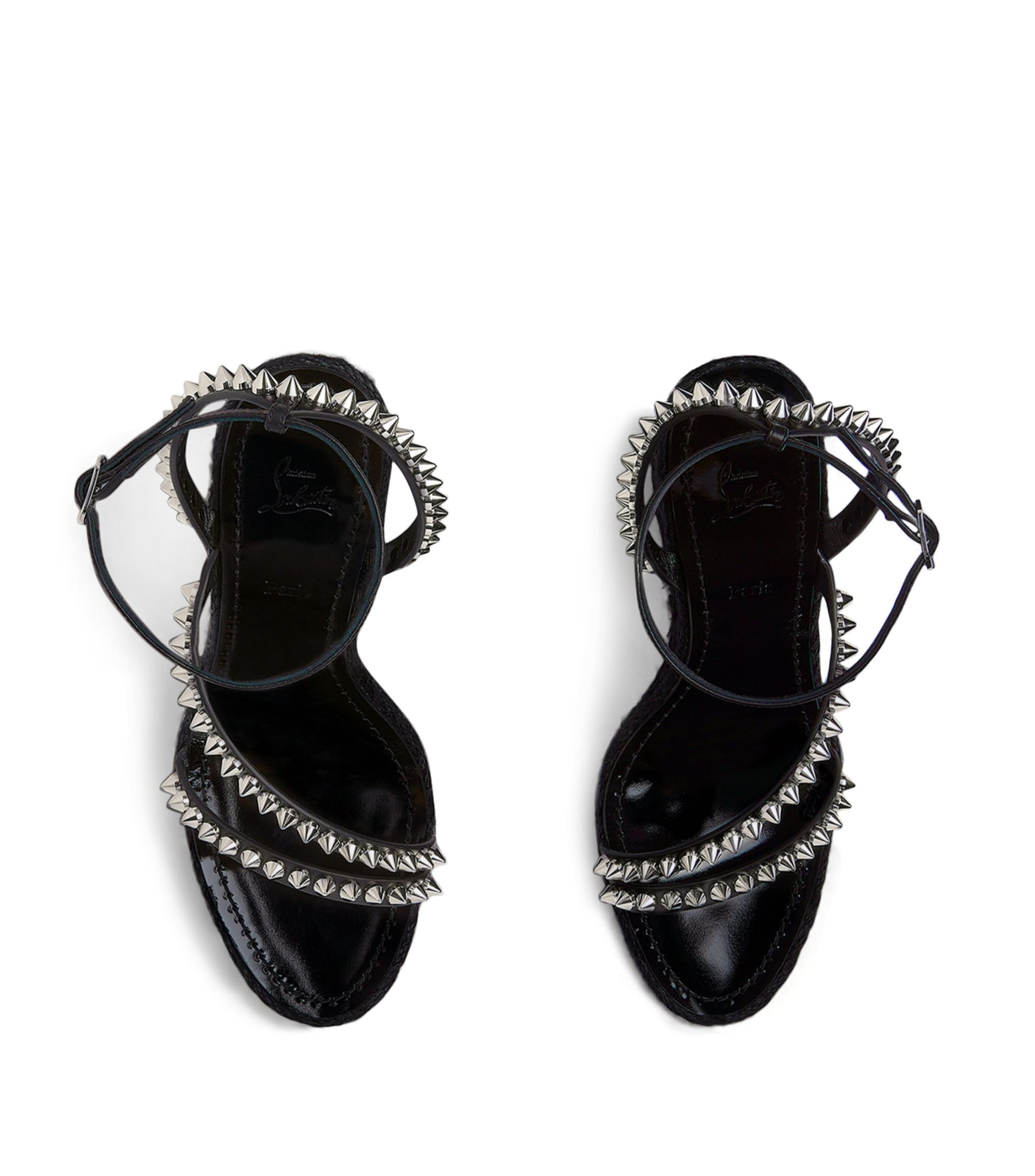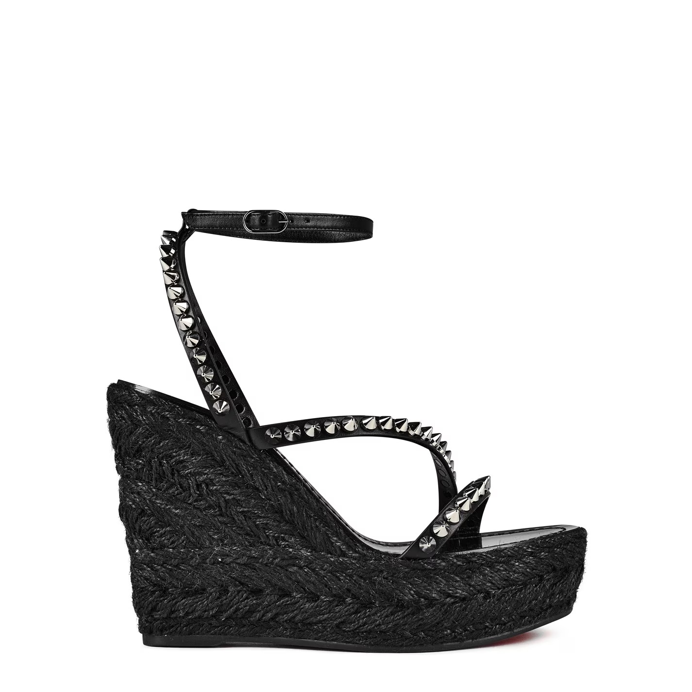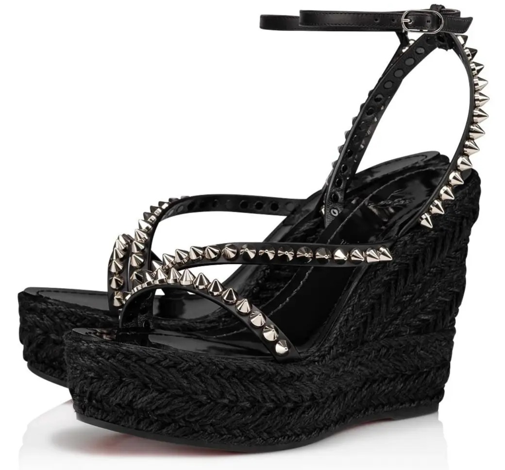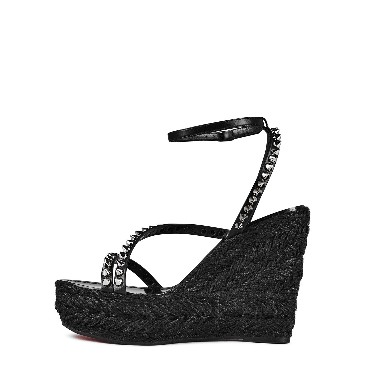 Christian Louboutin provides the perfect platform on which to build your summer-ready outfits with the Malfadina Zeppa sandals. Showcasing streamlined leather straps replete with signature tonal spikes, the pair sits atop a braided wedge heel while a buckle fastening highlights the ankle, creating a leg-lengthening quality that makes elegant styling effortless.