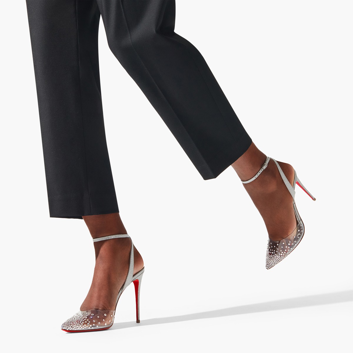 【Christian Louboutin】クリスチャン ルブタン Spikaqueen 100 mm PVC Calf Leather and Strass Silver Pumps JP 22.5 cm/EU 35/US 5/UK 3.5 年末セール