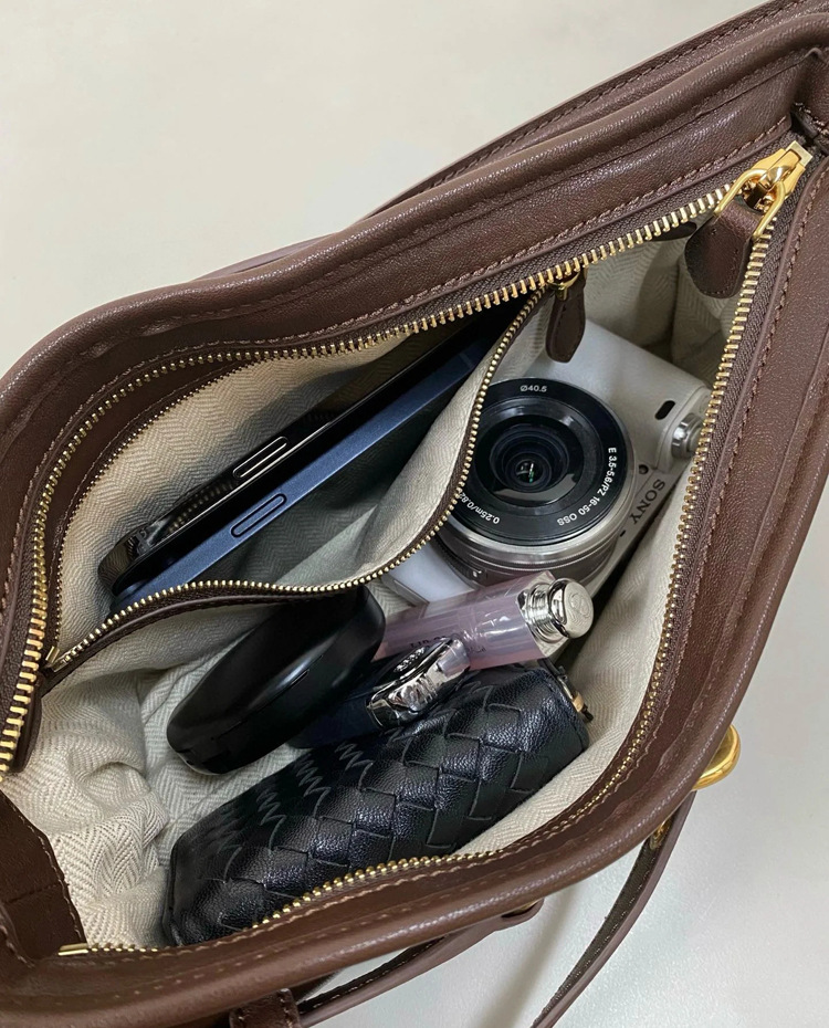 ハンドバッグまたはショルダーバッグとして使用できるレザーストラップ付