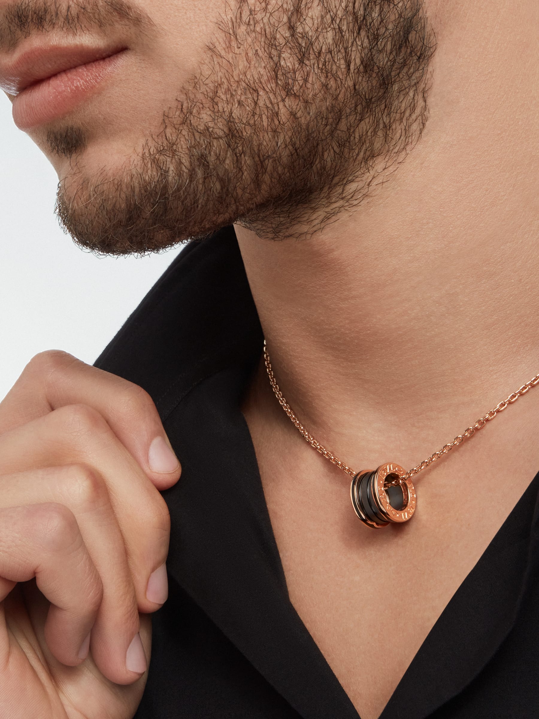 ブラックセラミックを使用した18Kピンクゴールド製ビー・ゼロワン ペンダントネックレス。