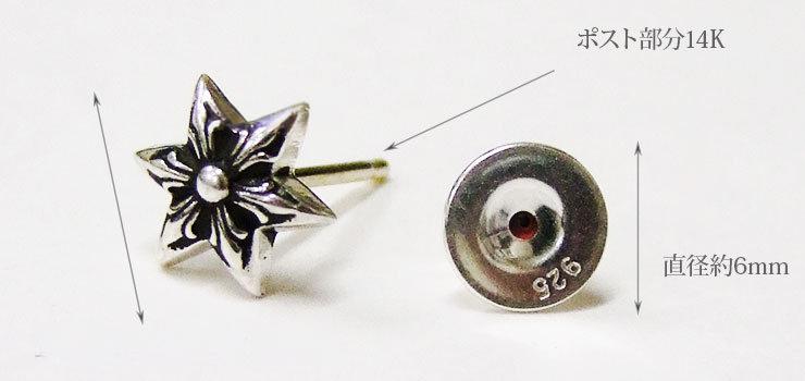 オールドスクールスタイルで、渋い燻し加工が特徴的なスターモチーフのピアス。