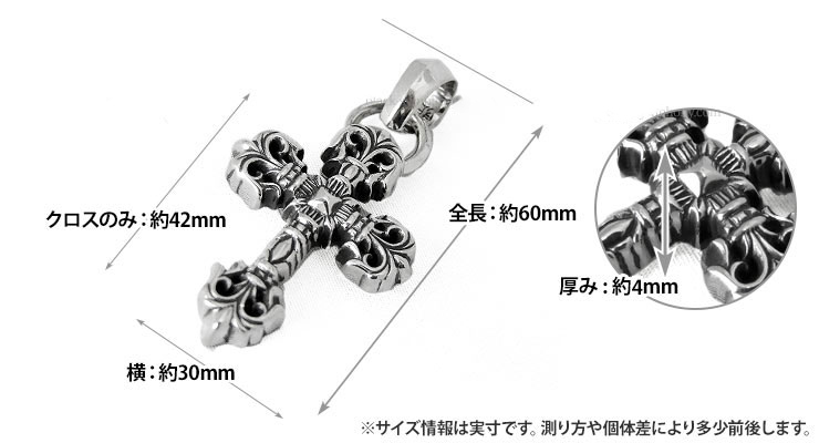 一般的なクロムハーツのアイテムと違って、ゴシックテイストを強く主張するペンダントですので、他のアイテムとの差別化を図りたい方にオススメのアイテムです。