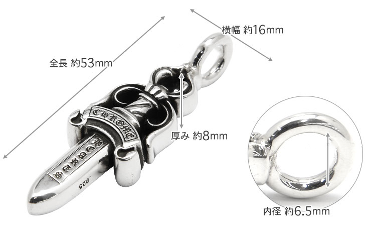 クロムハーツのペンダントシリーズの中でも、クロスに並ぶ歴史の長い、ダガーモチーフのペンダントを、よりグレードアップし、バチカン(チェーンを通す穴)を作ったアイテム。