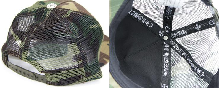 クロムハーツキャップの象徴でもある、クロスボタンが天頂部に鎮座し、シルバーの輝きを放っていて、 またこれまでのトラッカーキャップCHカモとは違い、細やかな部分のディテールがグレードアップしています。