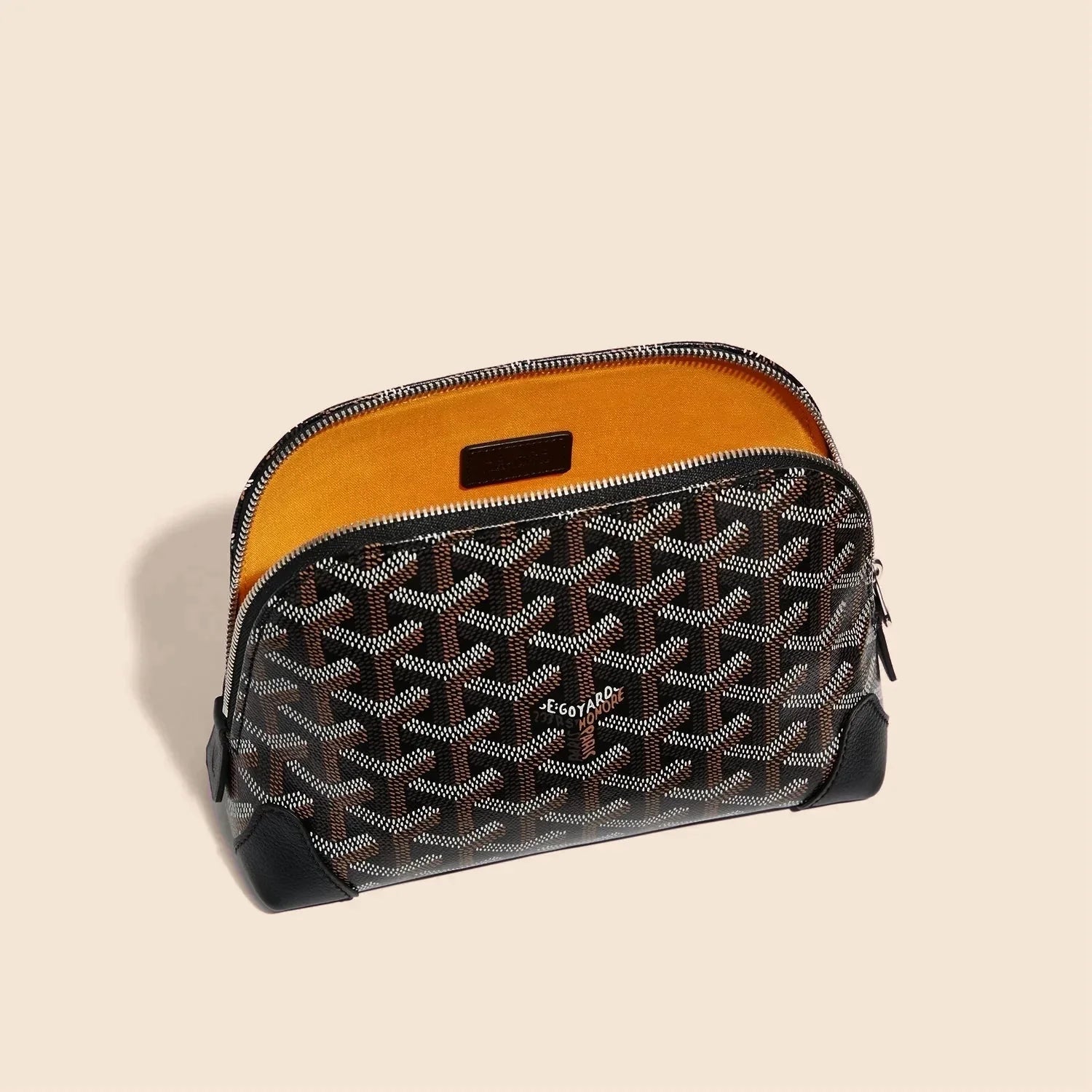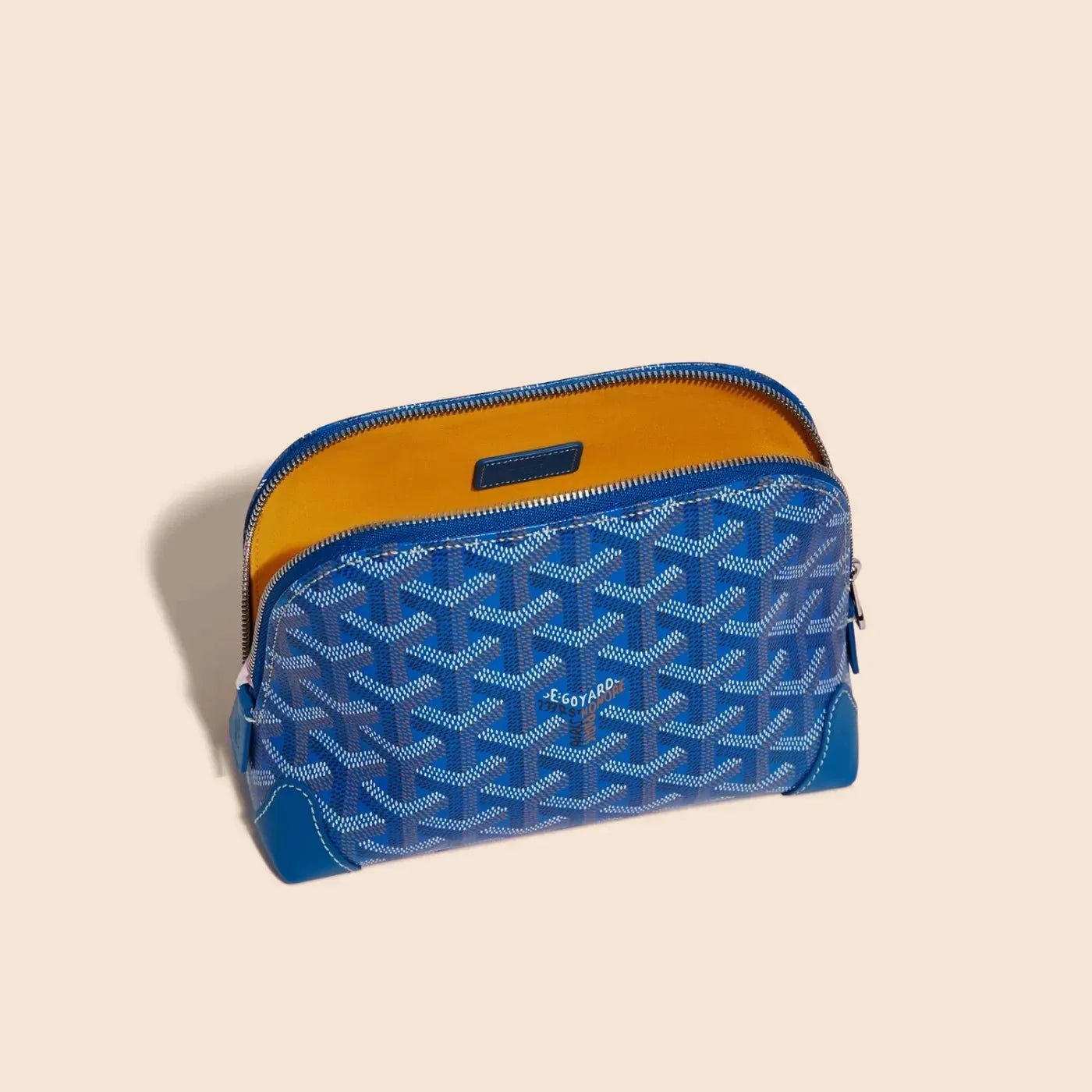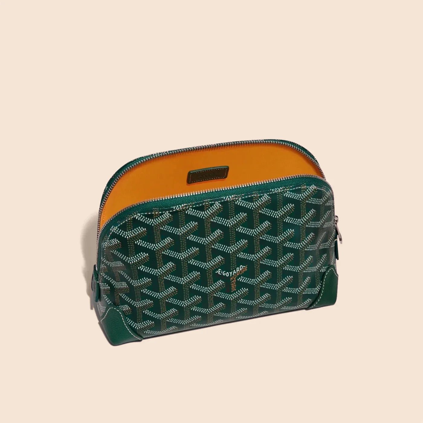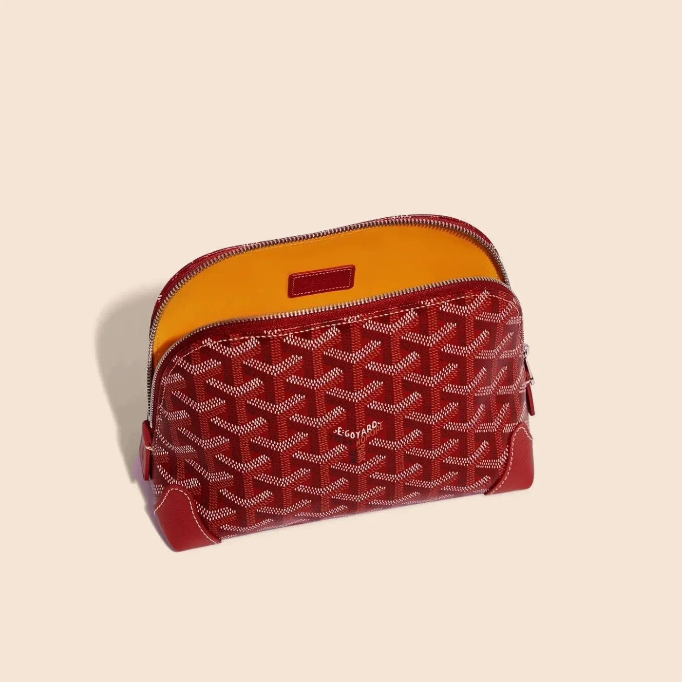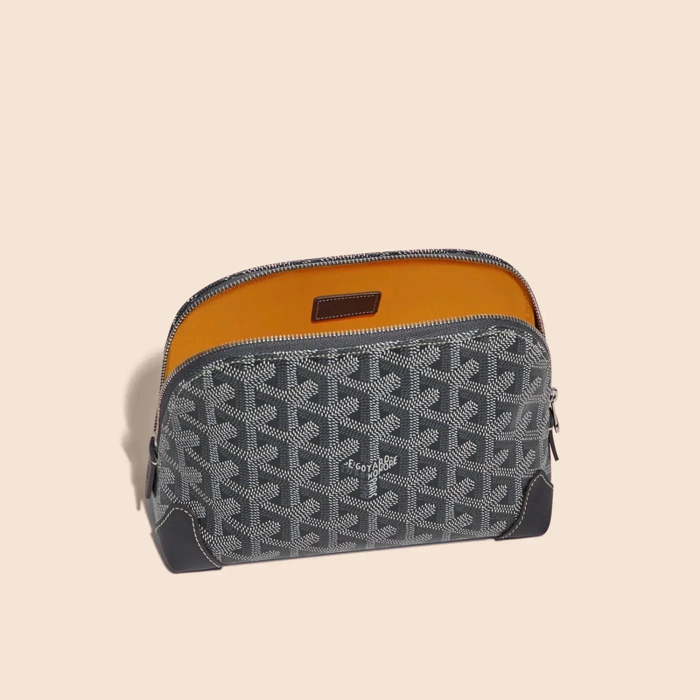 This cosmetic pouch is the ideal makeup case, featuring a water-repellent cotton lining for easy cleaning. Its compact size allows it to slip seamlessly into an everyday bag or suitcase. Inspired by the aesthetics of our signature bags, it includes distinctive features such as a dome-shaped construction, leather corners, and a G-shaped pull tab.