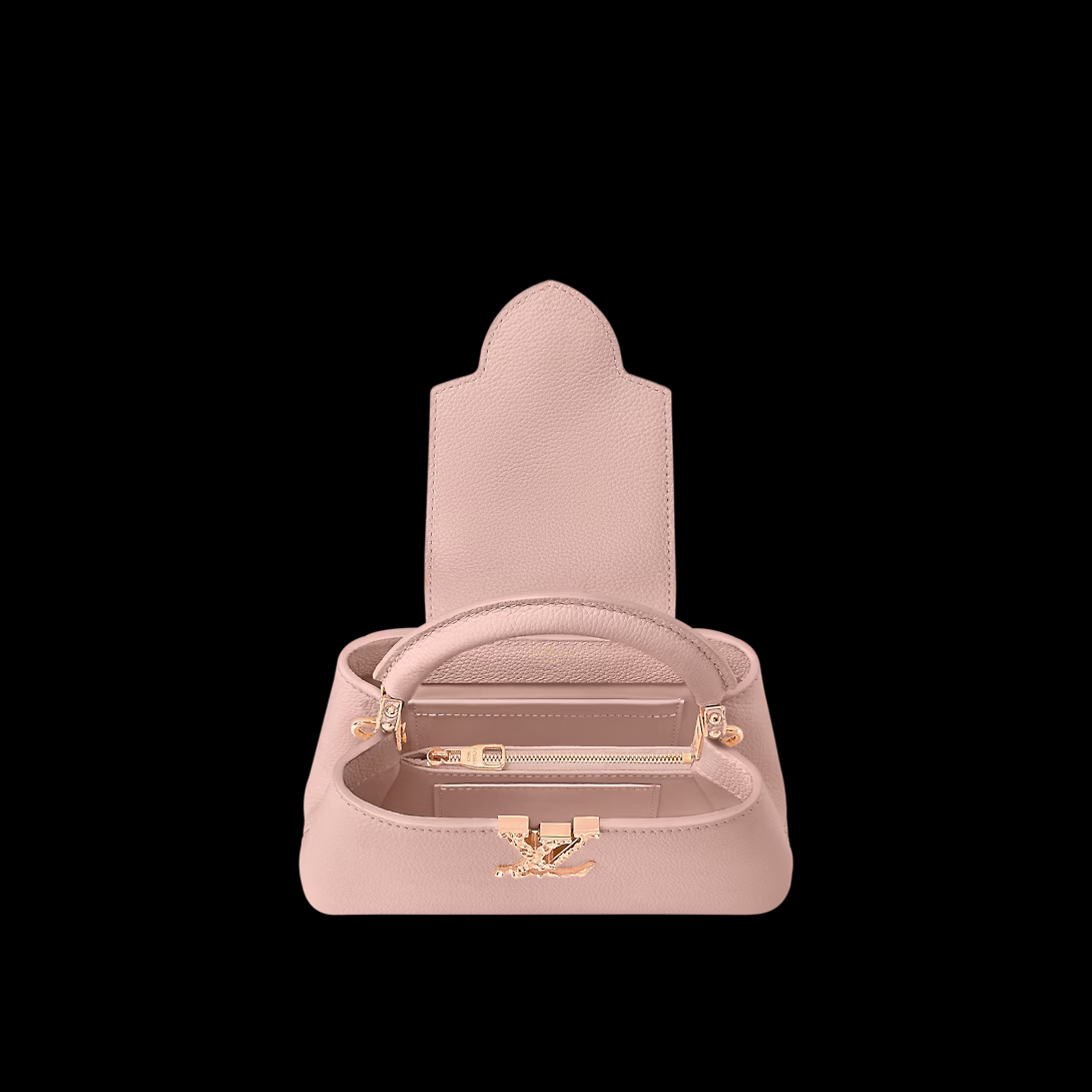 ヴィトンから、艶やかなトリヨンレザーで仕立てた“カプシーヌ MINI”です♪新雪に降り注ぐ冬の陽光を想わせる「Capushine」カプセルコレクションに相応しい一品です。手作業でエアブラシを施して構造色調に仕上げたレザーが、光を受けて煌めきを放ちます。LVイニシャルとハンドルマウントリングにも、スキーのゴーグルからインスピレーションを得た独特な色の風合いがあしらわれたエレガント漂うお品です。