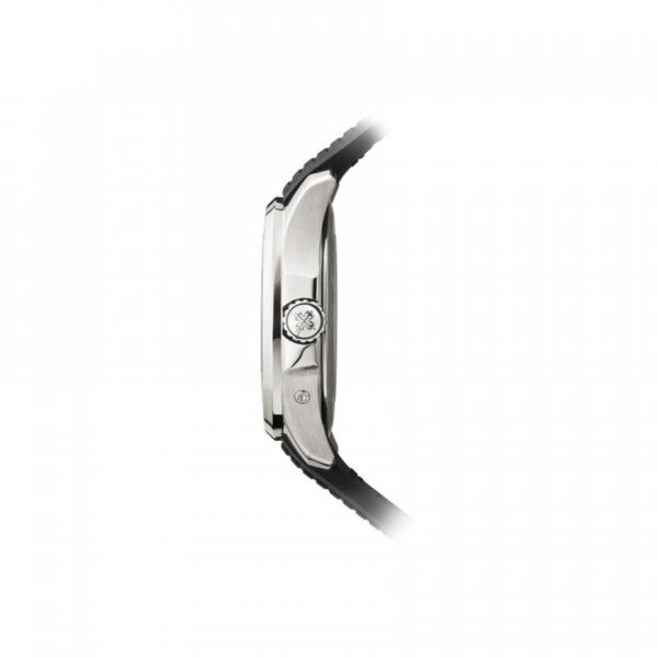 ステンレススチール仕様。 ねじ込み式リュウズ。 サファイヤクリスタルバック。 6気圧防水。 ケース径(10-4時方向):40 mm。 厚さ:8.52 mm。