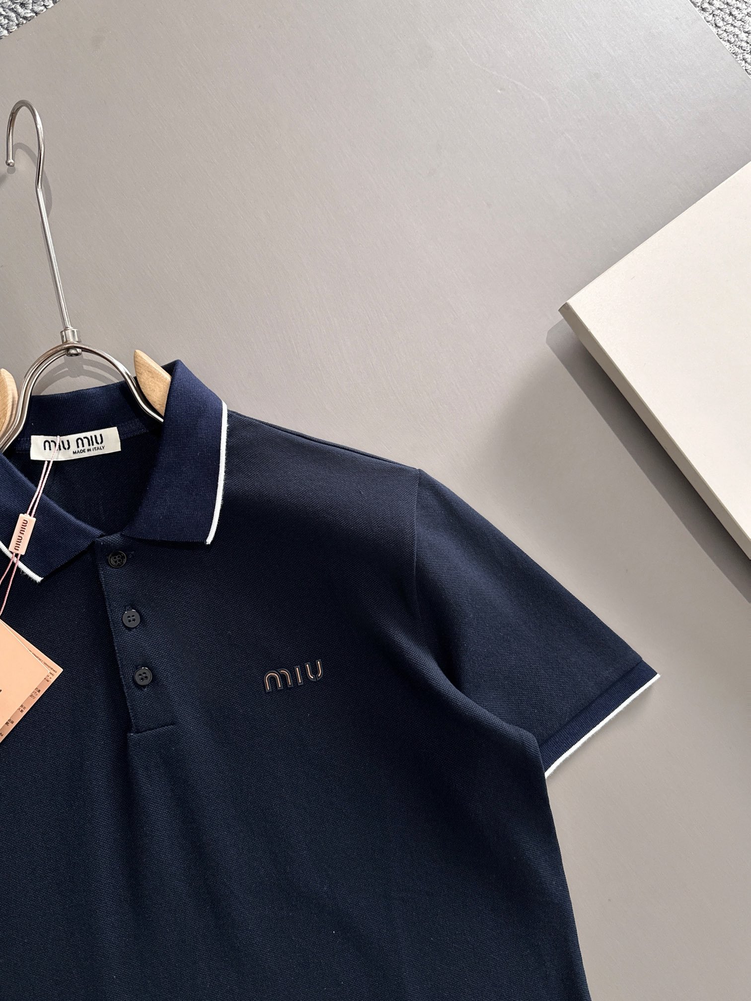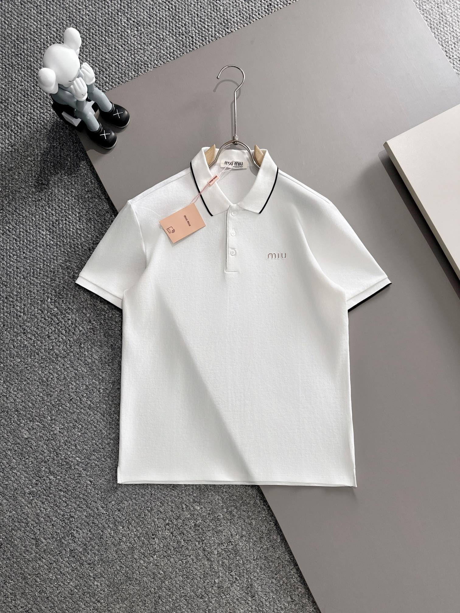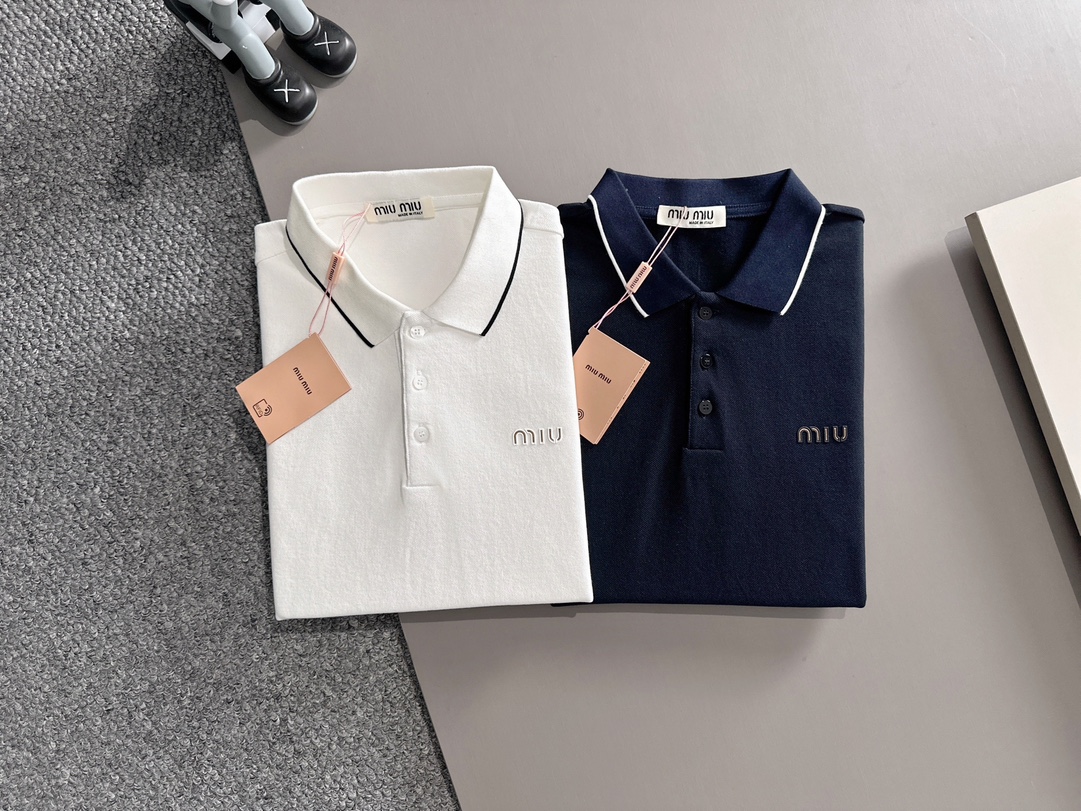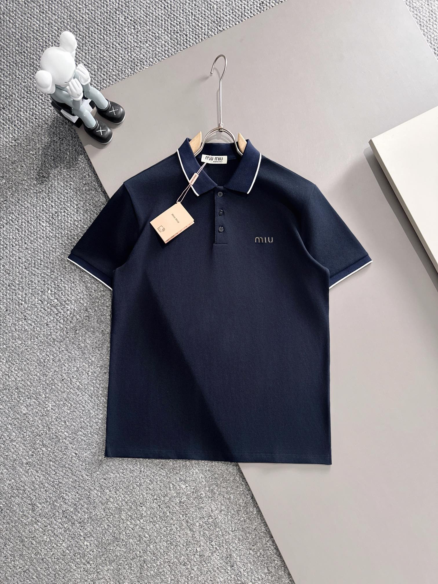 MIU MIU 2025年春夏新作 ネイビー/ホワイト ポロシャツ 半袖 T138063