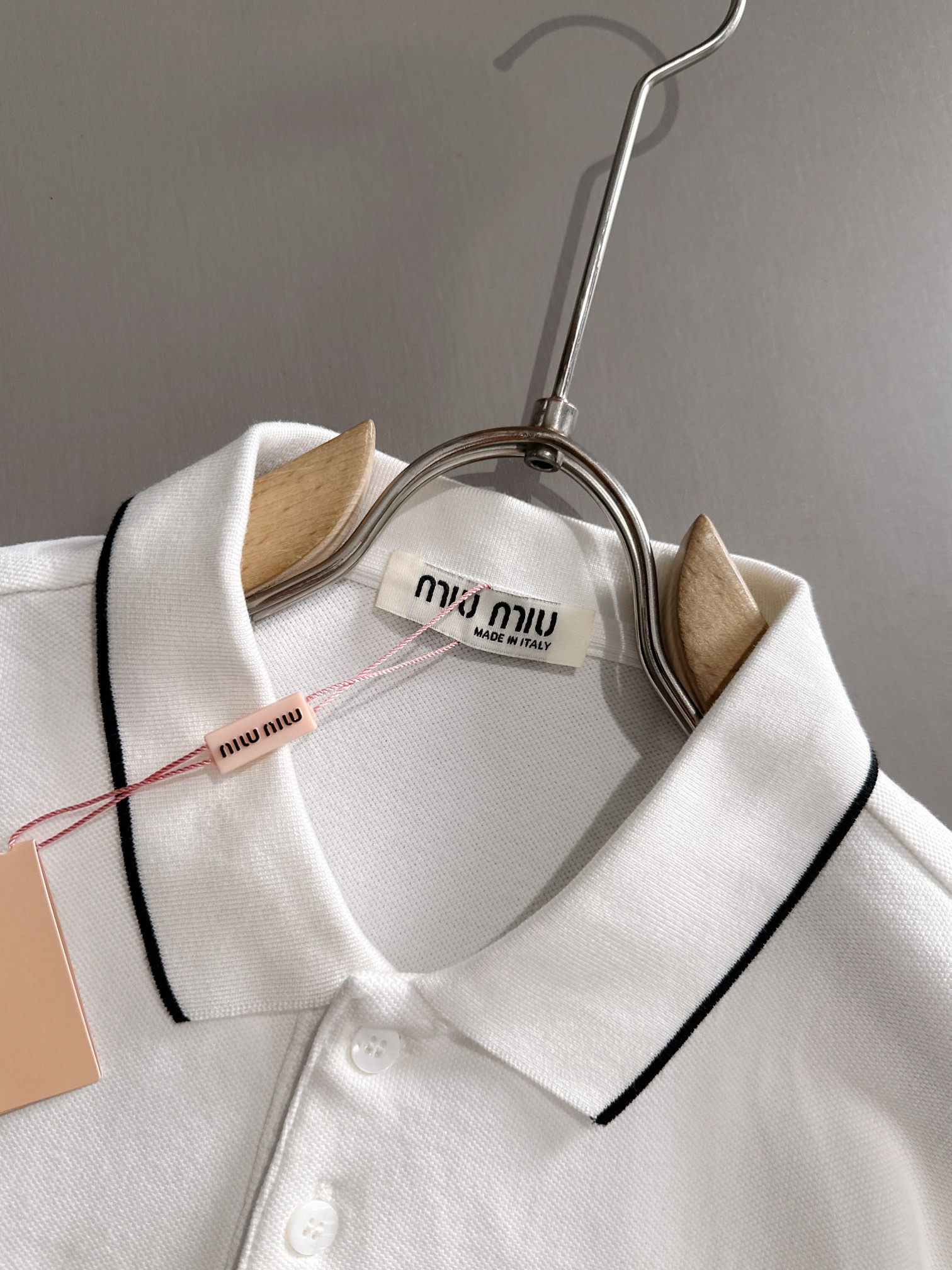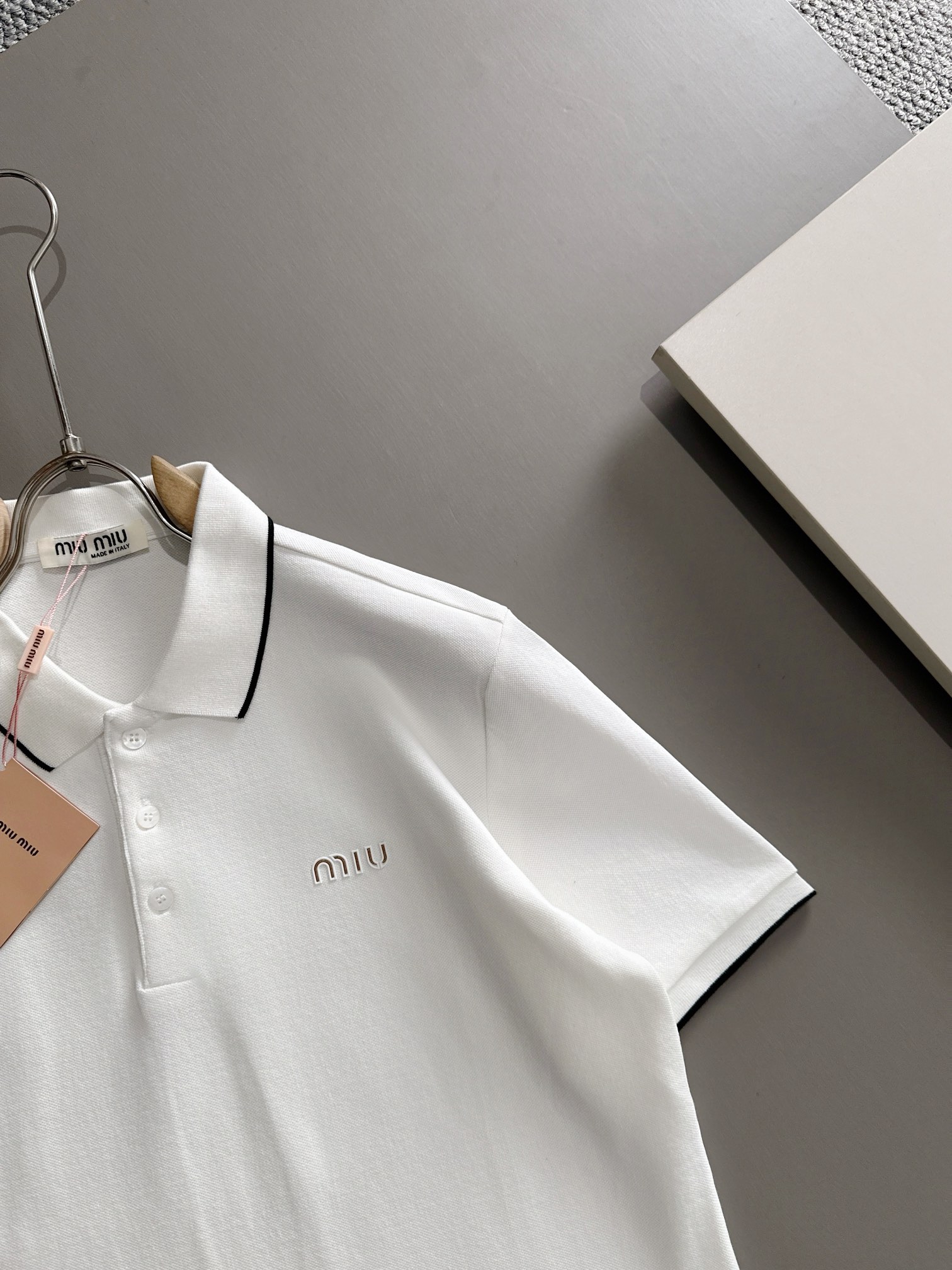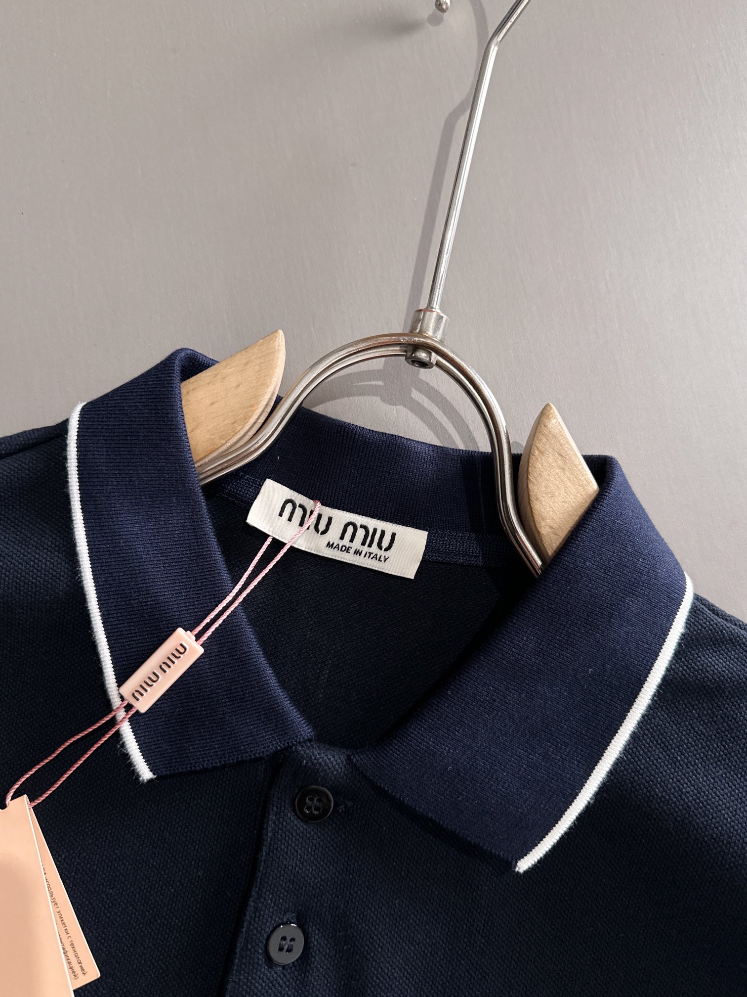 MIU MIU 2025年春夏新作 ネイビー/ホワイト ポロシャツ 半袖 T138063
