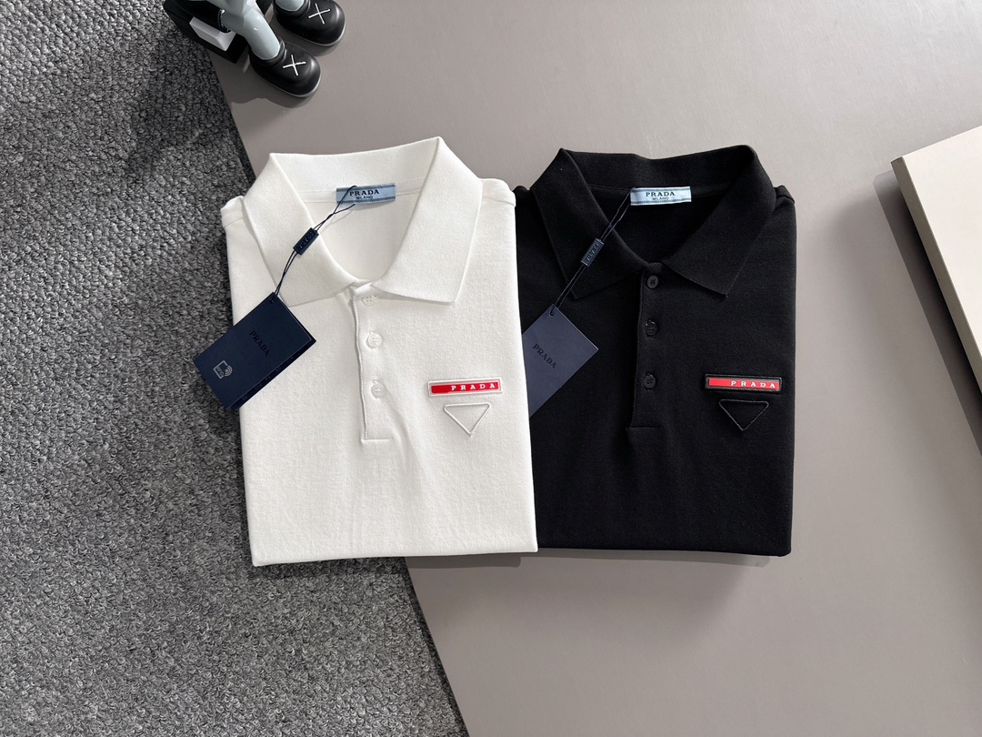 【プラダ】Prada 2025年春夏新作 ブラック/ホワイト ポロシャツ 半袖 T138073