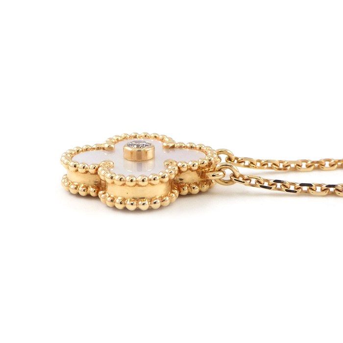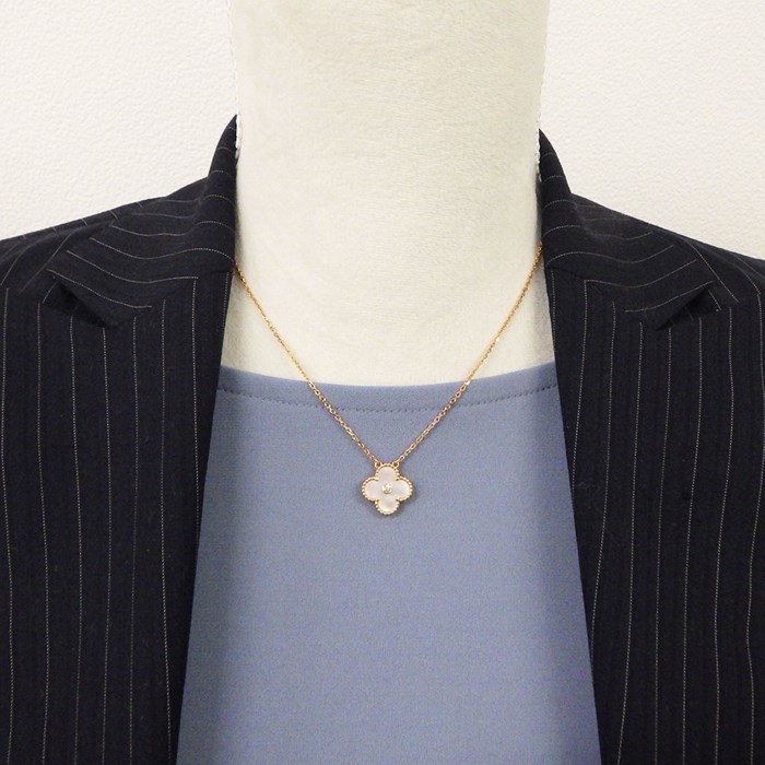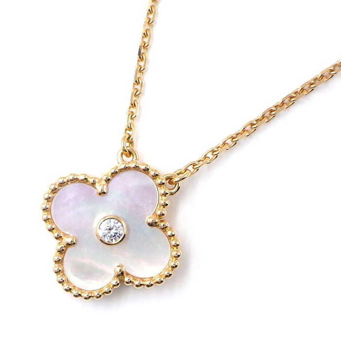 Van Cleef & Arpels Necklace Vintage Alhambra 2012 Christmas Limited Rare White Shell 1 Point Diamond 750(18K) Rose(Pink) Gold Elegant Rare レディース 花 クローバー フラワー ペンダント ダイヤ ホワイトデー 卒業祝い 就職祝い プレゼント ギフト 贈り物 記念日 誕生日 White Day Present Gift Anniversary Birthday